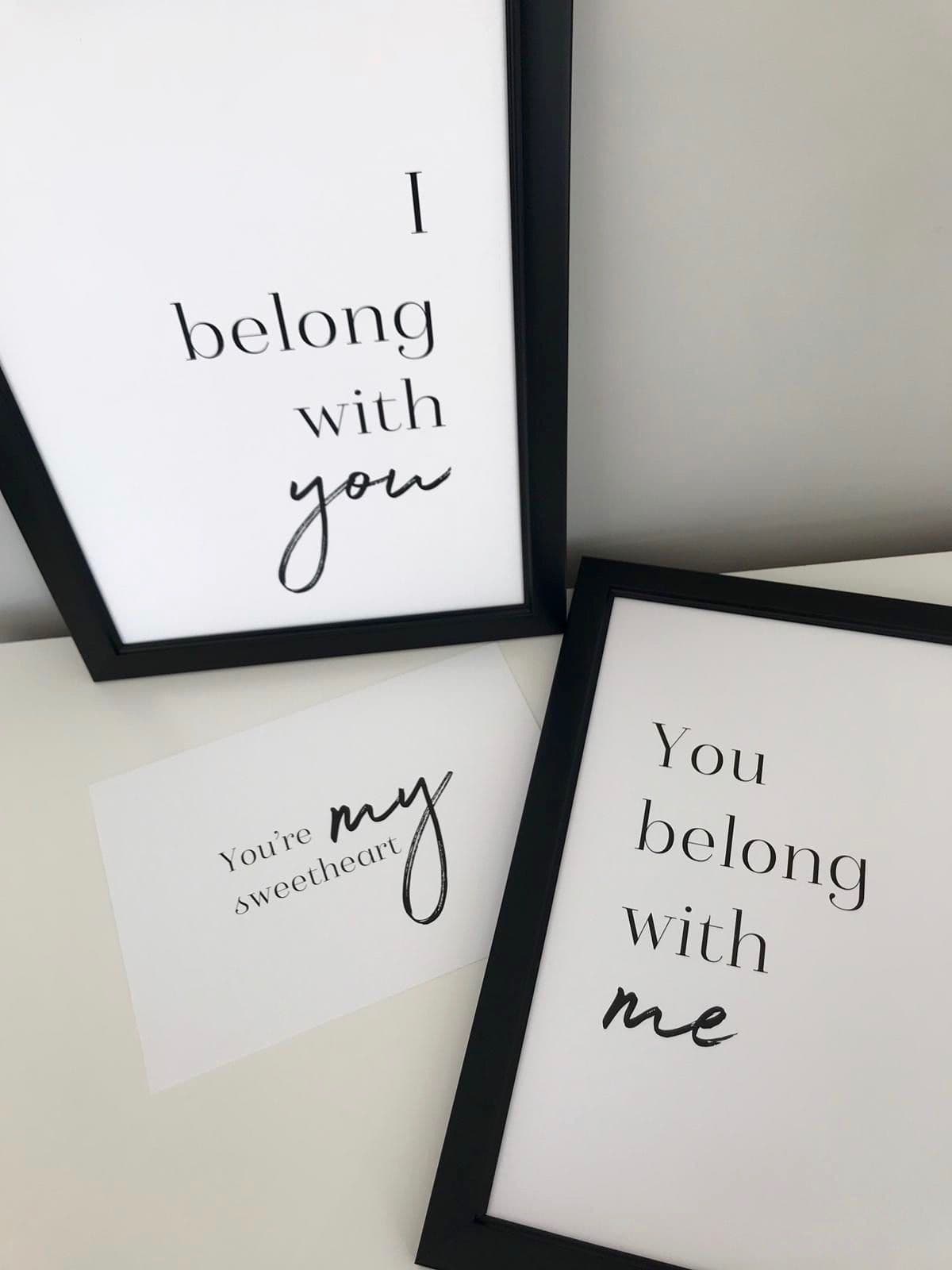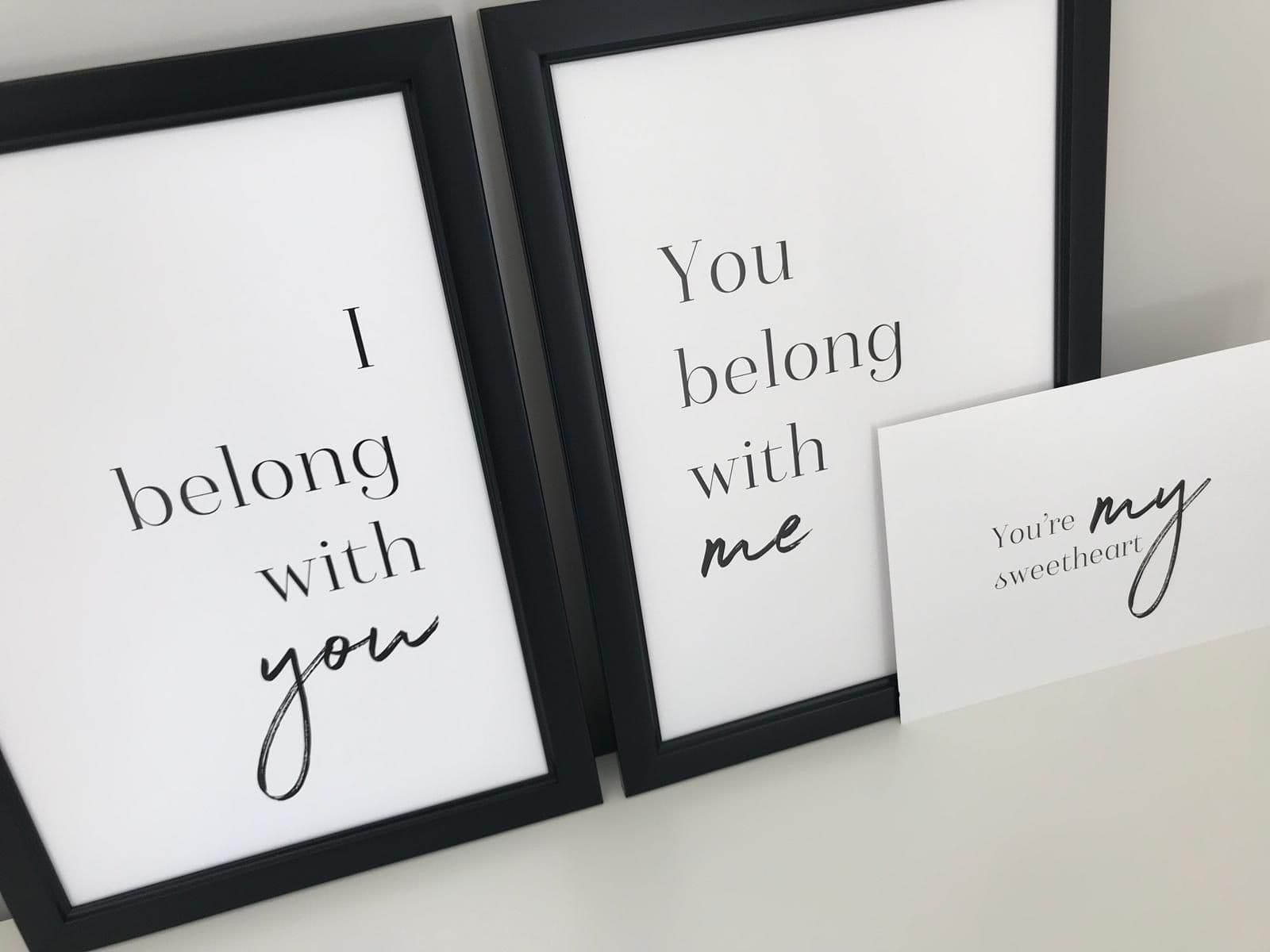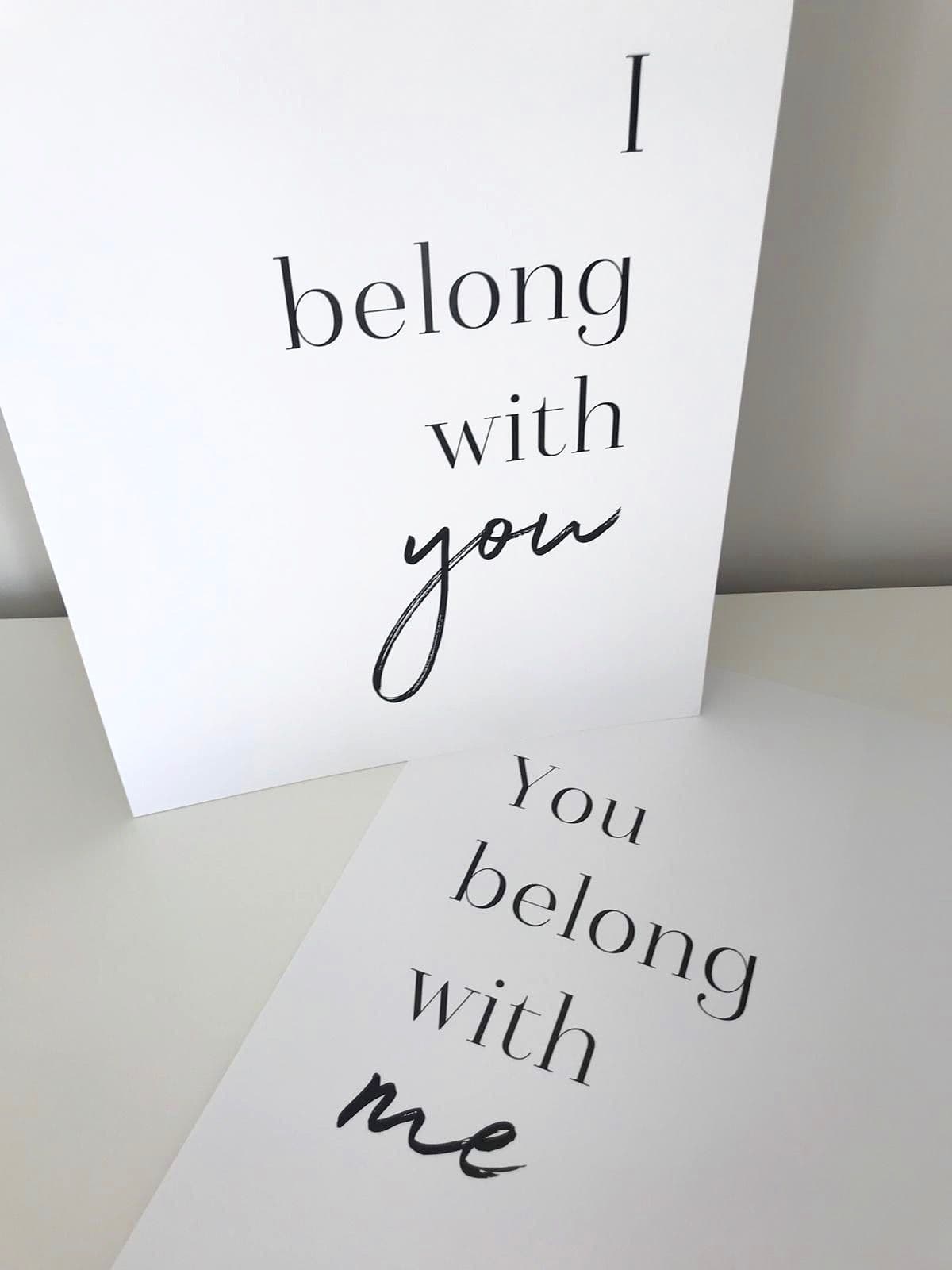 I belong with you & You belong with me SET OF 2 (A3 & A4 mono prints)
